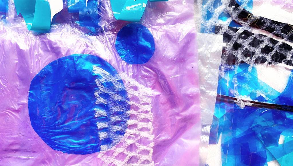 When Covid 19 hit, many recycling centres in the UK were temporarily closed due to concerns regarding the spread of the virus. Scott’s project centred around finding ways to reuse plastic waste that would most often be sent to landfill or disused recycling points. Working with domestic supplies made from HDPE and PET such as milk cartons, clothing packaging and shampoo bottles, Scott was interested in creating sensorial experiences with the plastics for use in future multi-use retail environments for 2025. Using no heat and slow design processes such as hand stitching and pleating, she was able to create material samples that appeal both visually and through touch. Scott wanted to help people create a deeper emotional connection to the plastics which would in turn make them more respectful of materials.