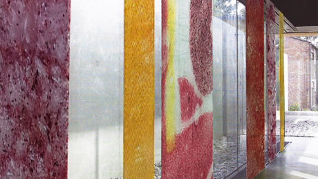 This semi-rigid woven surface is smooth, malleable, strong, mottled, translucent and long-lasting. The textiles allow colour and light to diffuse through.