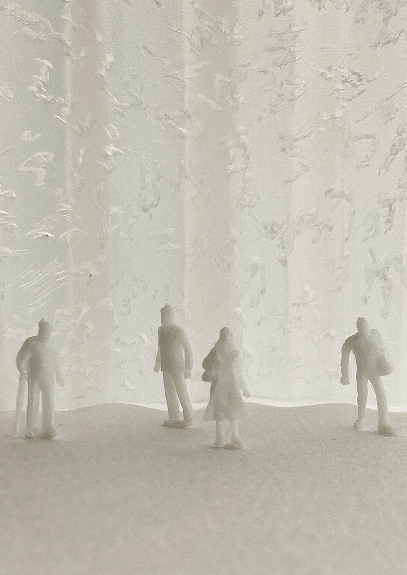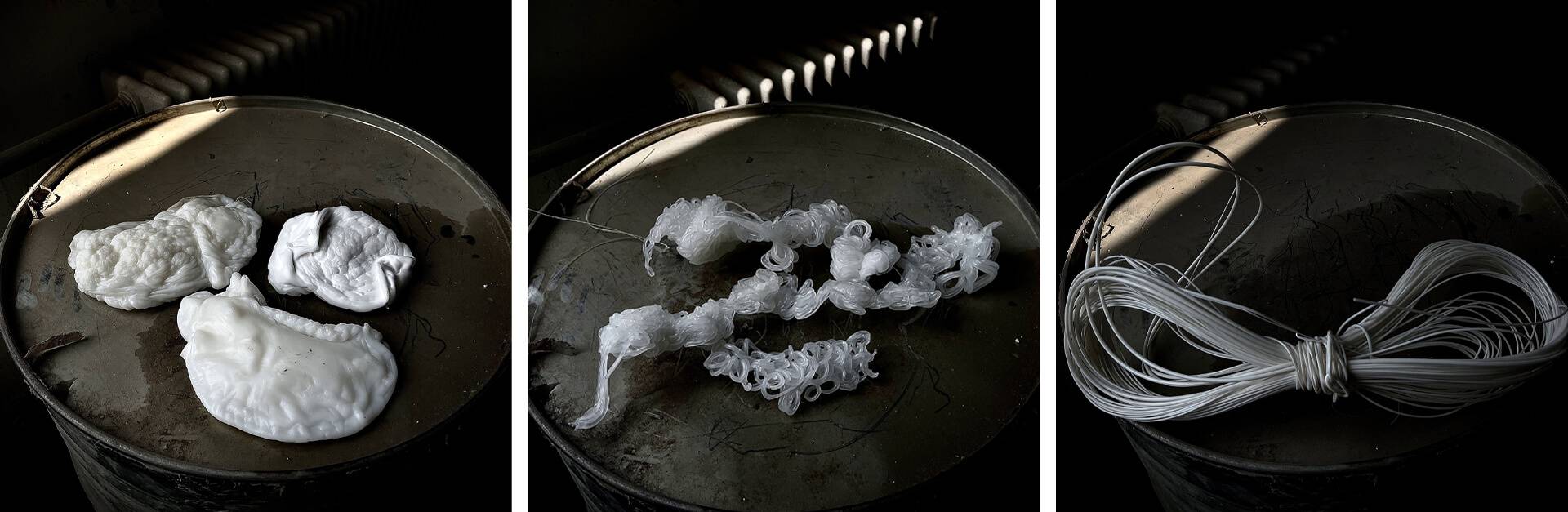 Drift aims to communicate the value of the ephemeral through the slow process of craftsmanship. Inspired by the strength and softness of water, Pei-Fen’s project embodies the idea of fluidity and movement by transforming single use plastic from a disposable product into new materials. Pei-Fen wanted to challenge the idea that plastic wrapping is fragile by deconstructing and reconstructing polyethylene wrapping into surface materials with a delicate aesthetic, which could be used for interior application. The contrast between the organic texture of her material and the repetitive flow of the sea further inspired her exploration into irregular patterns and modular designs. Playing between fragility and protection, mass production and handcraft, Drift epitomises the modern time: an inevitable coexistence between nature and the man-made, destruction and opportunity in the Anthropocene.