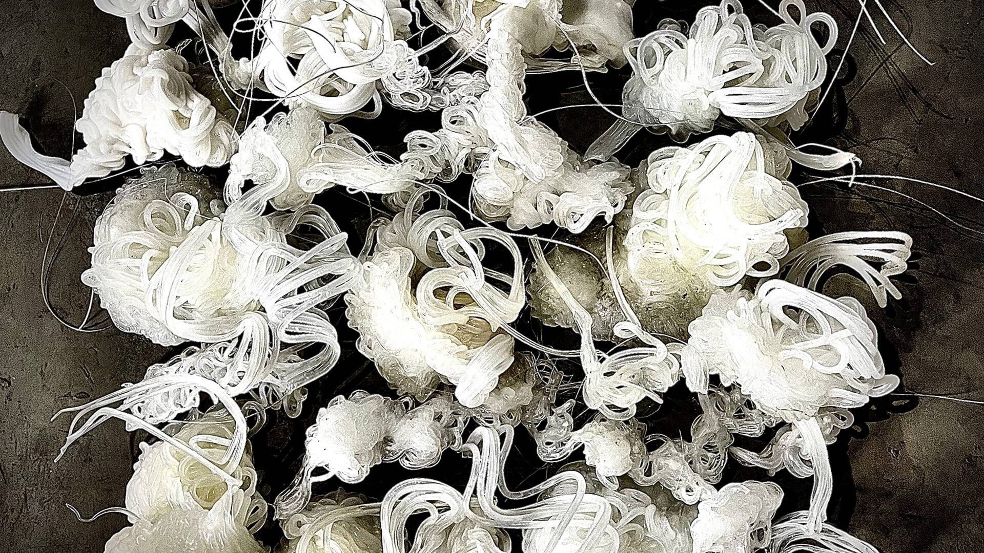 Unwanted and underrated packaging, 98% air, lightweight, organic architecture, soft, slightly spongy, bubbly.