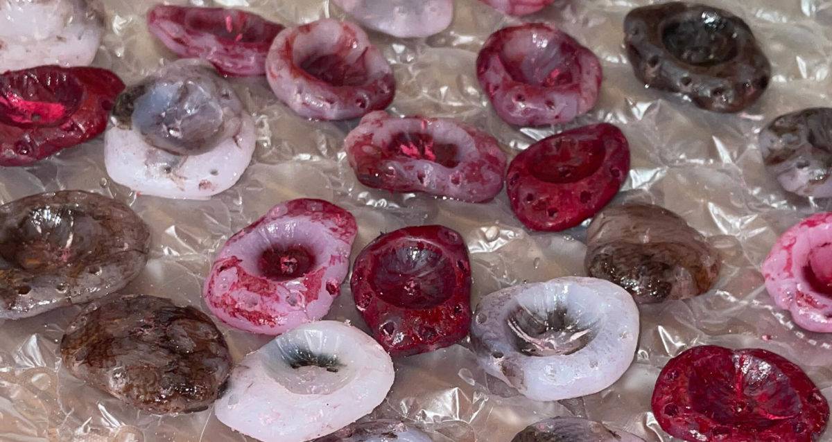 Her material exploration and dye processes were carefully considered to limit environmental impact. During her experiments, she found an organic compound that causes the polystyrene to change into a moldable consistency. The resulting material is hard compared to the soft, slightly spongy original polystyrene, and can be smooth or textured as desired. By rethinking this single use plastic, Voak hopes to shine a light on an issue in the UK recycling system and also show that the uses of polystyrene can go beyond the packaging and thermal insulation that it is commonly known for.