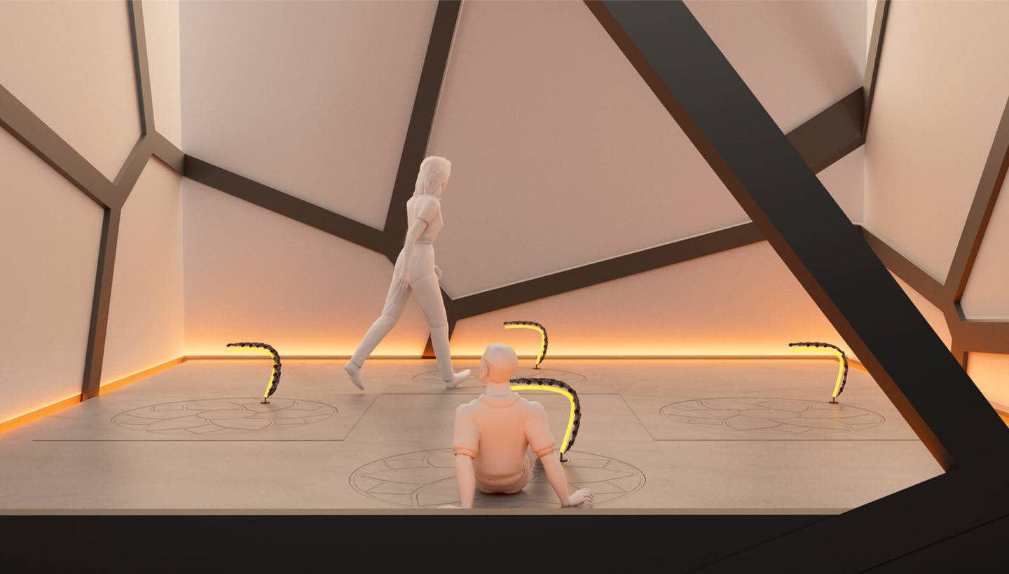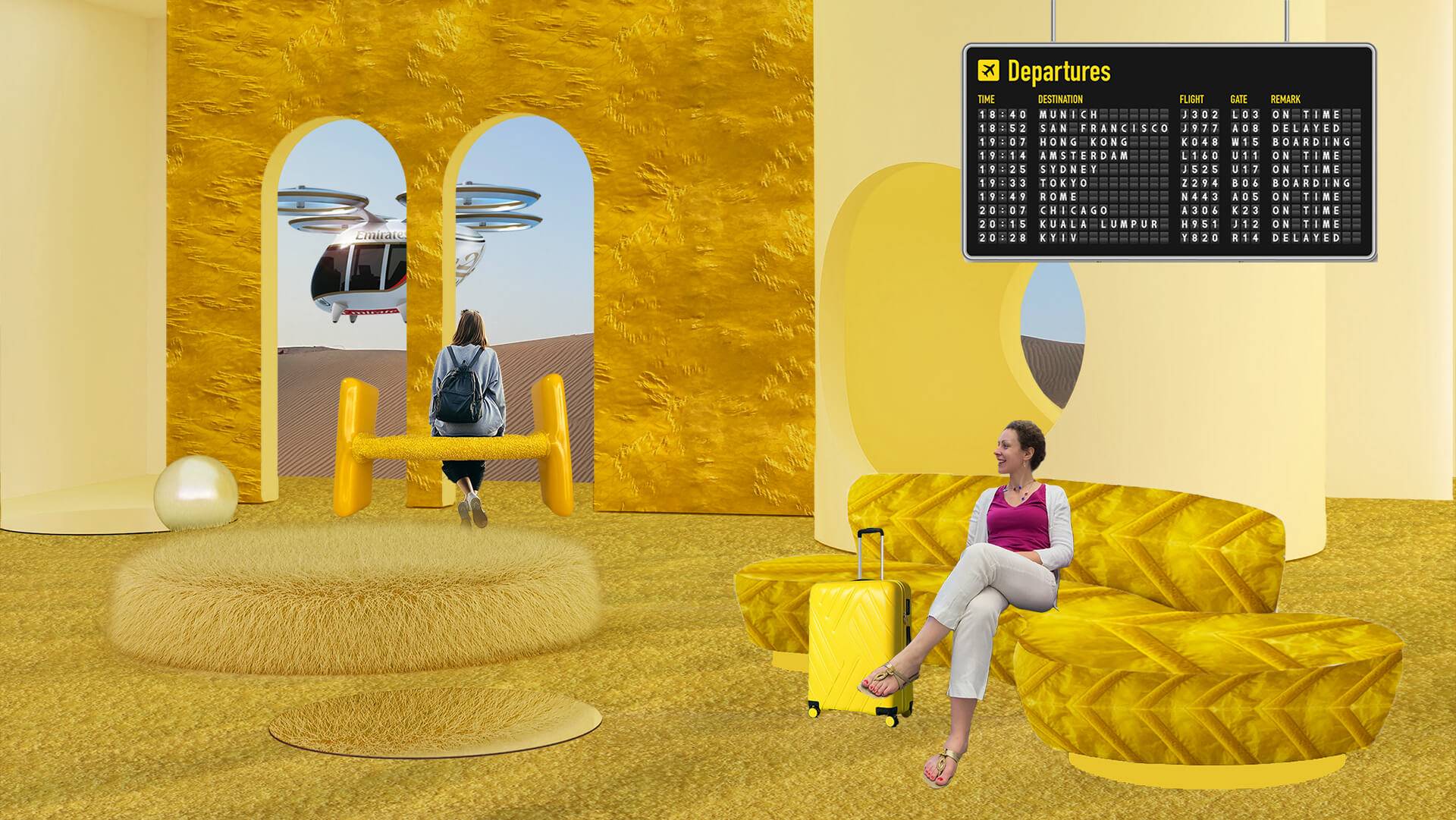 Plastic bags are one of the biggest contributors to the Middle East’s plastic problem. They get blown across the desert even if disposed of properly, resulting in harm to the natural landscape and wildlife. Using plastic bags as her source material, Wilkinson sought to embrace the transformation of this material as a way to extend and reveal its hidden potential. She approached this by inverting and challenging the material’s properties. Through this transformation, the value of the plastic bag is elevated thus challenging perception and demonstrating its potential for alternative uses. Inspired by the success of the UAE’s first drone taxi test, Wilkinson focused on applying her newly created materials to lounge interiors in drone taxi airports.