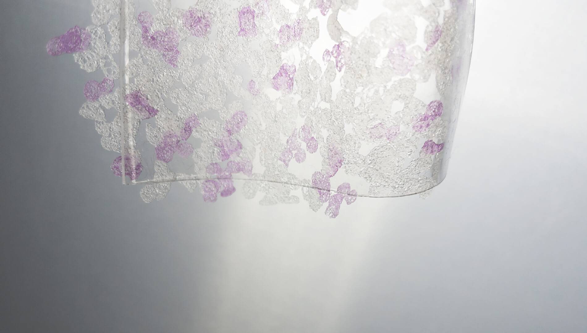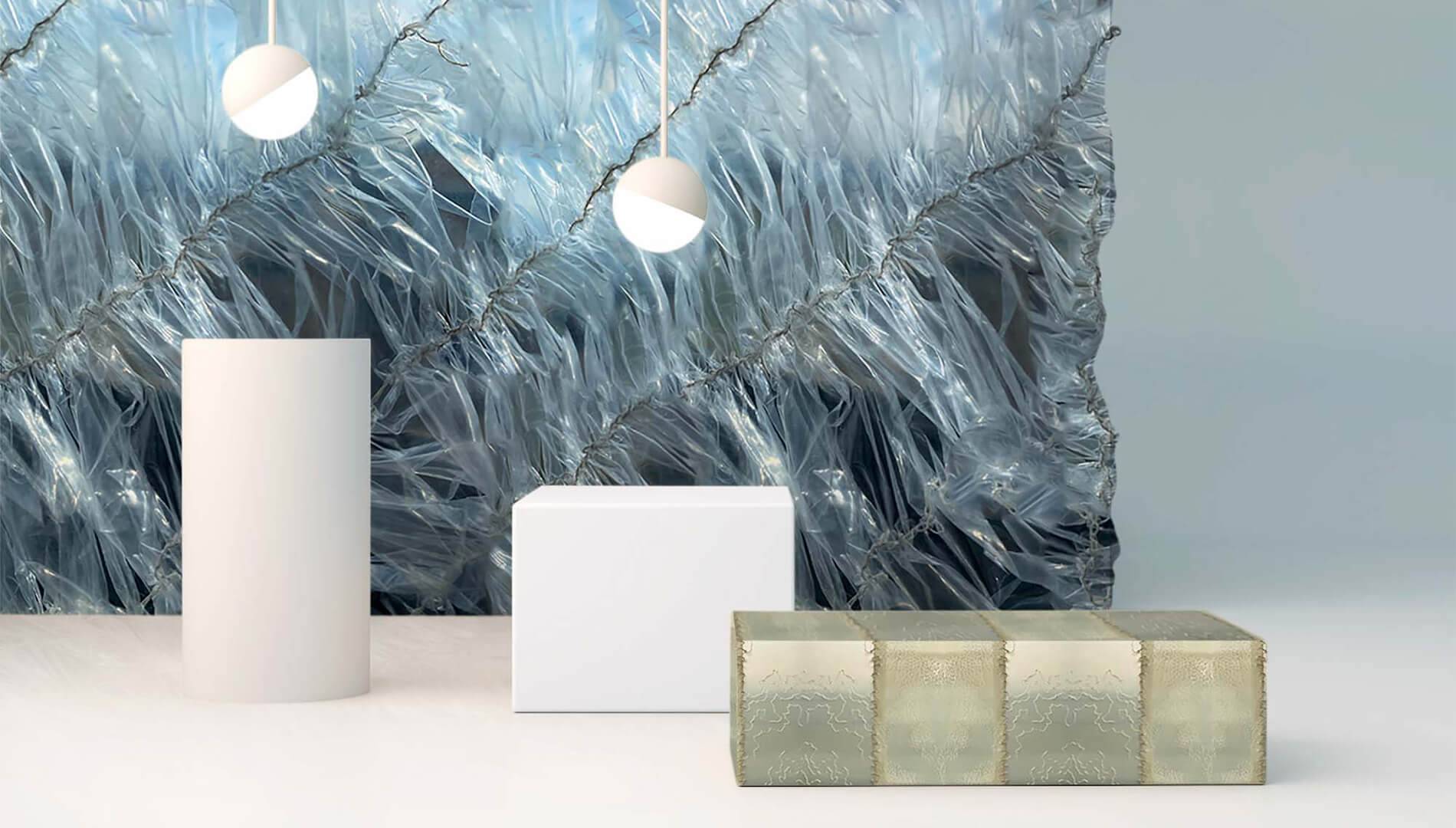 Zhang’s project illustrates her vision for the endless potential of plastic as a raw material to define future material solutions. ‘X’ refers to an undefined future while ‘Transformer’ represents the multiple possibilities and transformations of plastics. After identifying three major problems in current plastic recycling systems, Zhang built a full-scale systematic design model. Her experiments combined aesthetic ideals with science, and were based on an exploration of plastics on a molecular level. Zhang used recycled plastics and water to create new materials, which she calls Water Driven Surfaces. These capture the delicate chemical reaction that occurs when water molecules disrupt the forming process of plastic molecules, changing their inner structure and physical properties, offering new materials that can be used in a wide range of environments.