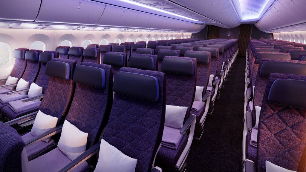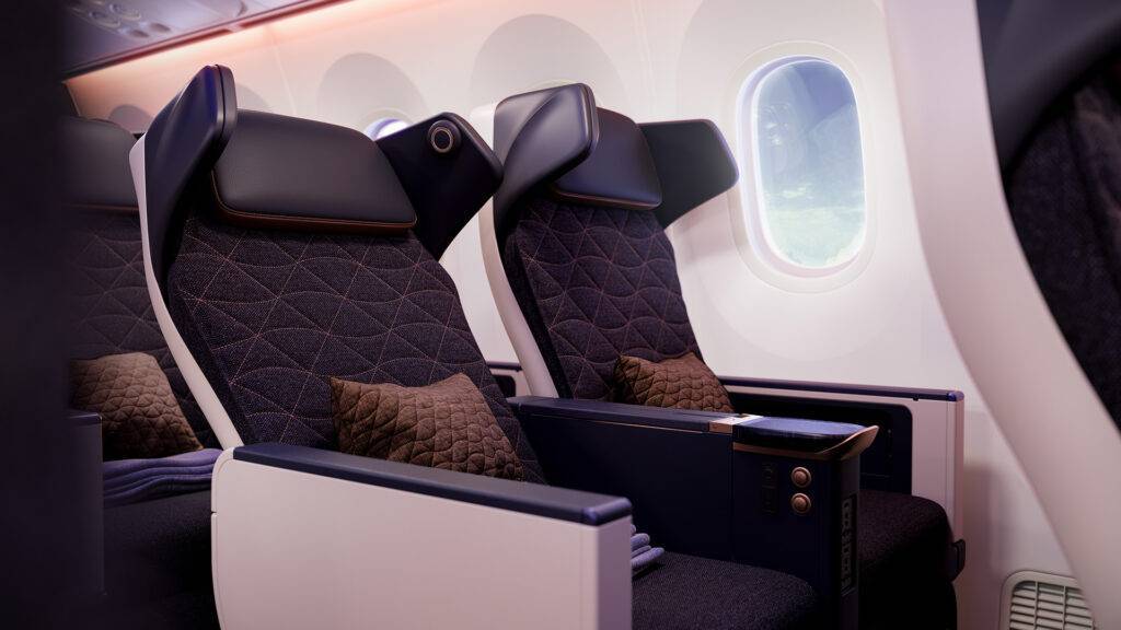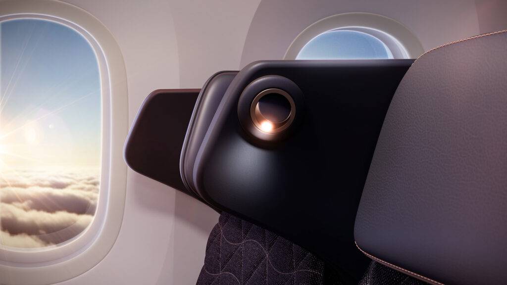 Central to the design was a commitment to passenger comfort. PriestmanGoode introduced a bespoke topper to enhance seat comfort in both Business Class and Premium Economy classes, designed choreographed lighting scenes to shape the onboard atmosphere, and optimised seat heights in Business Class to create a tailored experience for passengers. The Canopy Twist played a pivotal role in this, allowing for light projection and adding a sense of movement throughout the cabin.